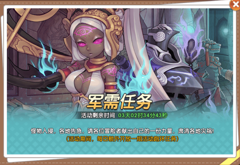 活动内容:活动期间,每日额外开放一组活动跑环任务,任务难度升级,奖励丰富。