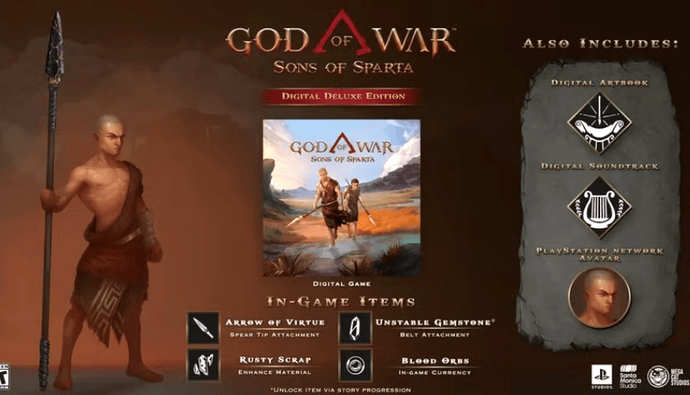 本作由Mega Cat Studios开发,是一款 2D 动作平台游戏,采用 16 位像素风格美术。游戏讲述奎托斯童年时期与弟弟戴摩斯的训练与冒险经历,角色主要使用长矛与盾牌战斗,并可通过特殊道具辅助冒险。作品评级为T(青少年)。
